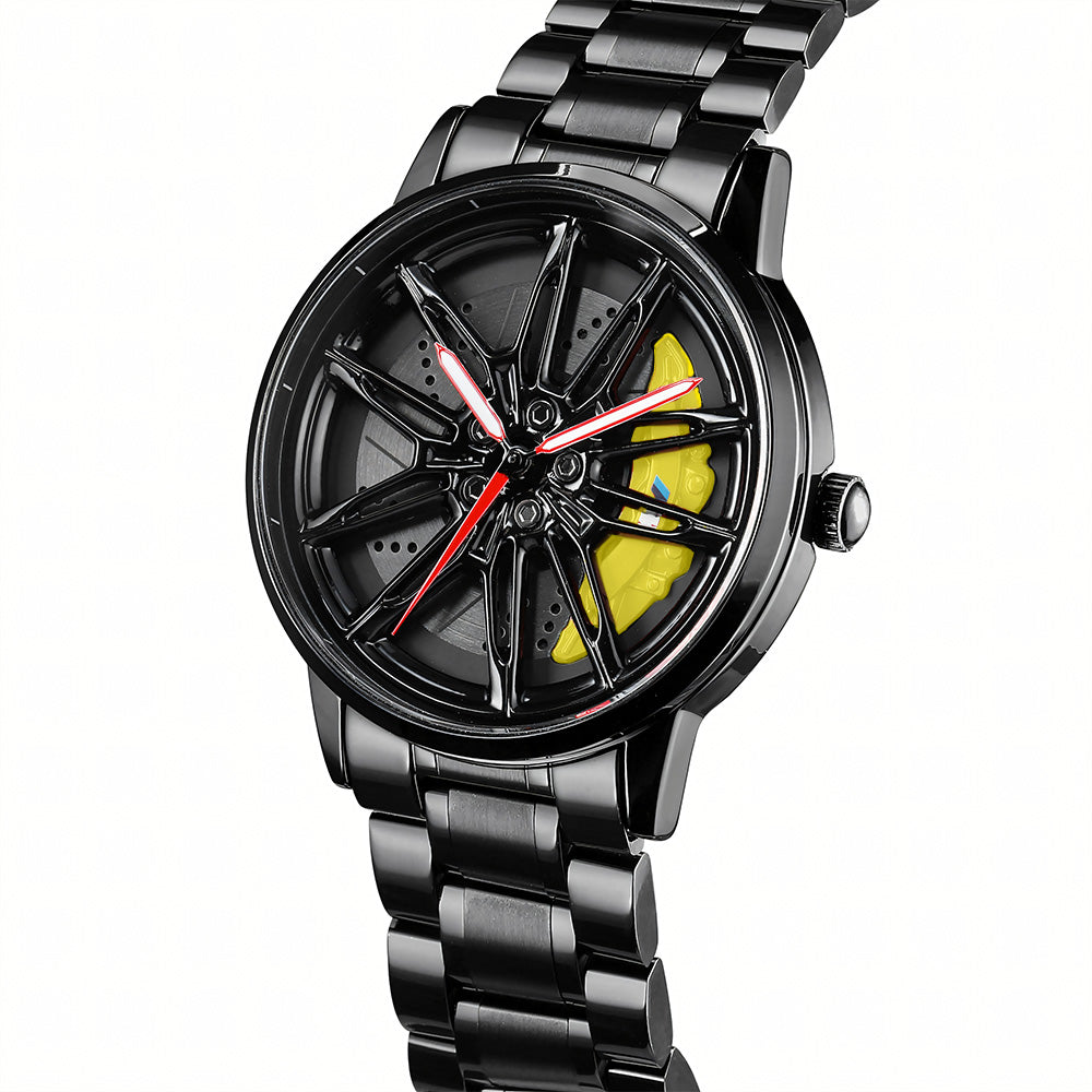 Apresenta um mecanismo giratório inspirado na roda de um carro, proporcionando uma experiência visualmente impactante.