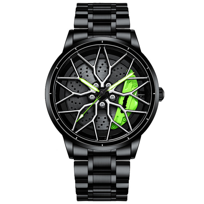 Apresenta um mecanismo giratório inspirado na roda de um carro, proporcionando uma experiência visualmente impactante.