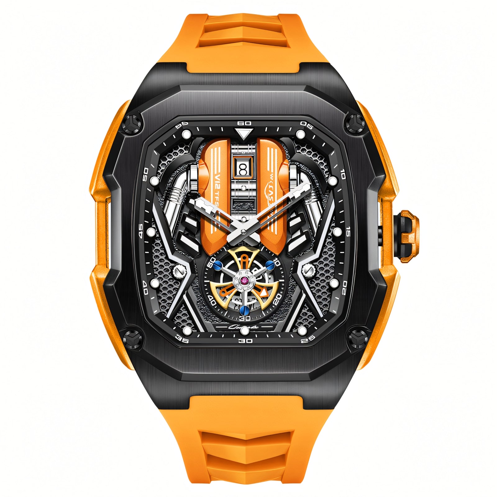 Isto não é apenas um relógio — é o rugido de um V12, capturado no tempo. Cada detalhe é uma homenagem à força bruta, à engenharia de precisão e à emoção da estrada aberta. Feito para aqueles que vivem rápido, pensam grande e carregam o espírito de um supercarro no pulso.
